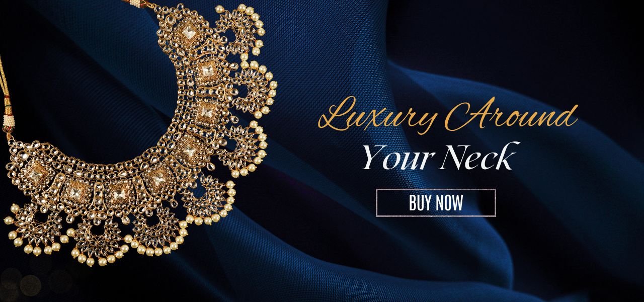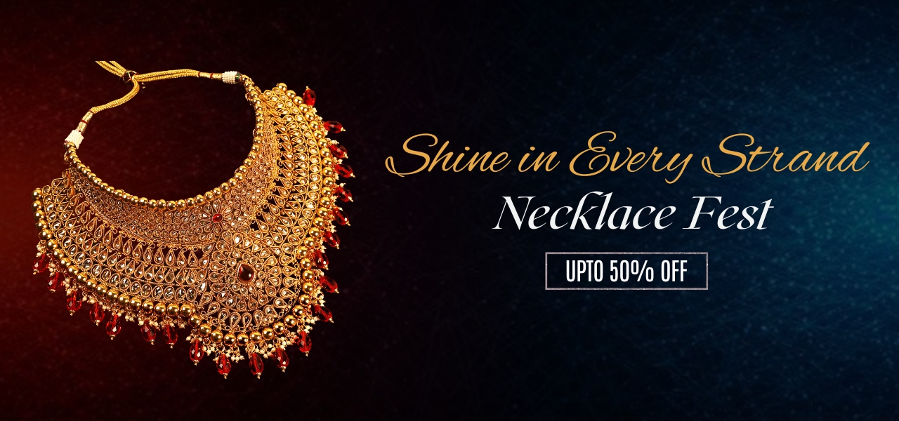 - Necklaces – Explore a wide range of traditional Indian necklaces, including Kundan, Meenakari, Gold Plated, and Pearl sets — perfect for weddings, festivals, and daily glam.
