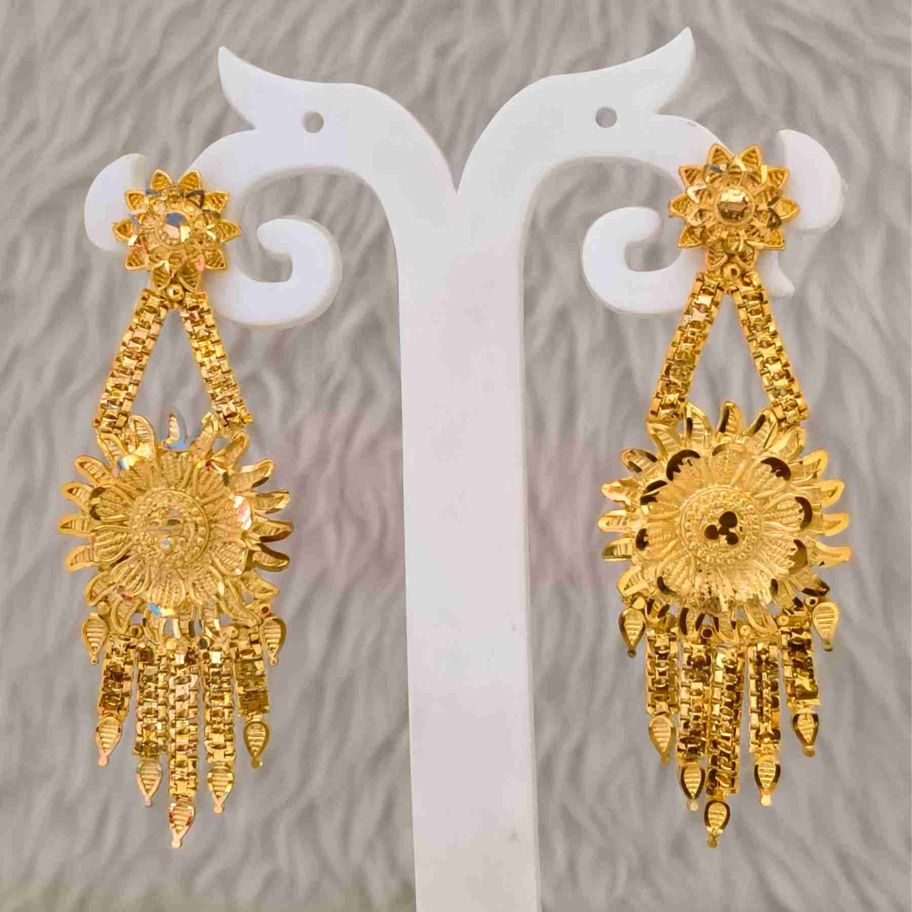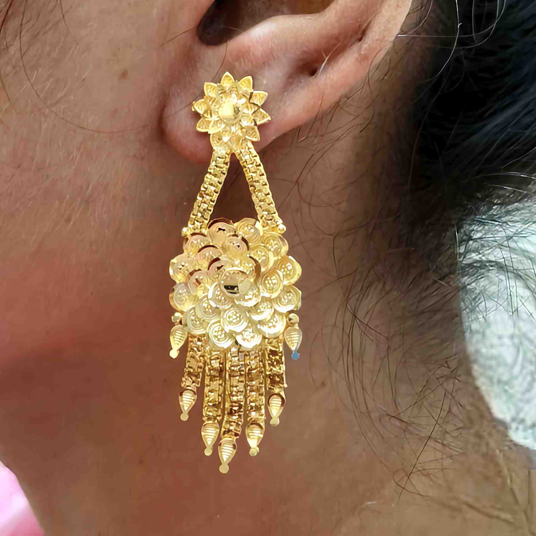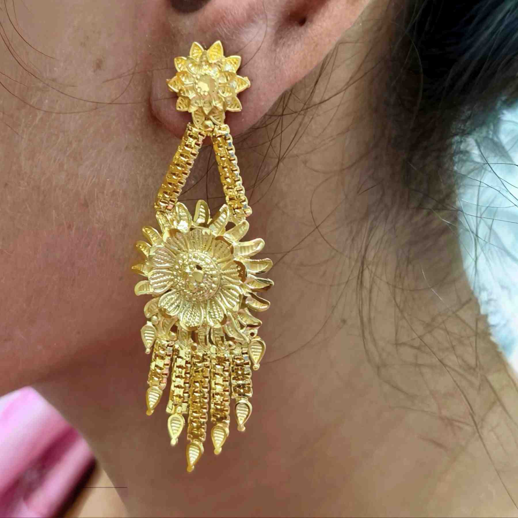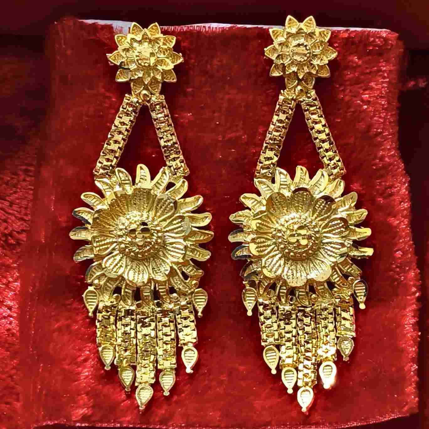 Bloom in elegance with these 1gm gold plated flower-pattern lightweight earrings — where timeless beauty meets everyday grace.