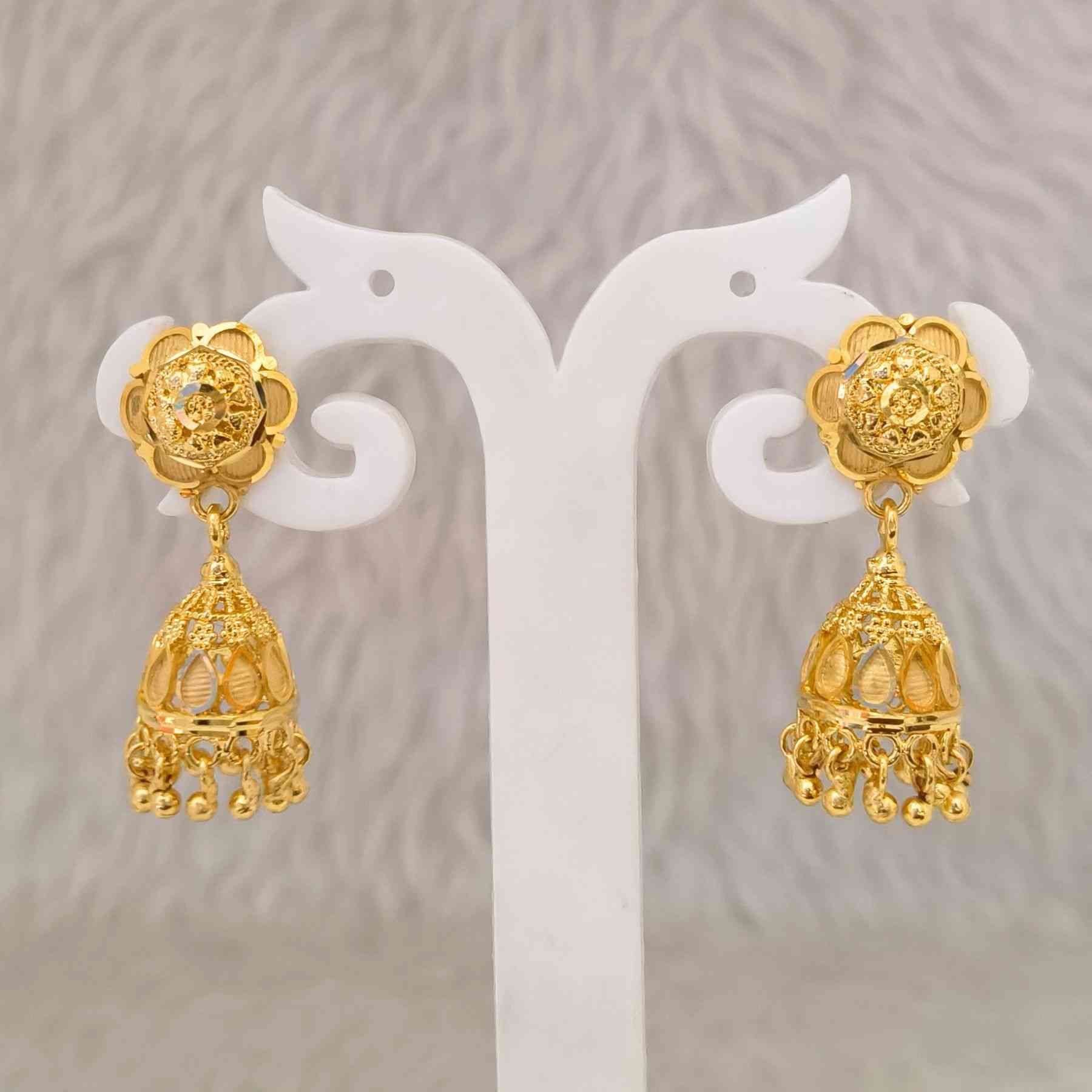 Add a graceful ethnic charm to your collection with these 1gm Gold Plated Lightweight Jhumkis, featuring a traditional flower design. Crafted from high-quality copper base metal with a glossy gold finish, these jhumkis are perfect for daily wear, festive occasions, or gifting. A stylish and affordable jewellery option for women and girls in Bihar who love lightweight artificial earrings with a touch of tradition.