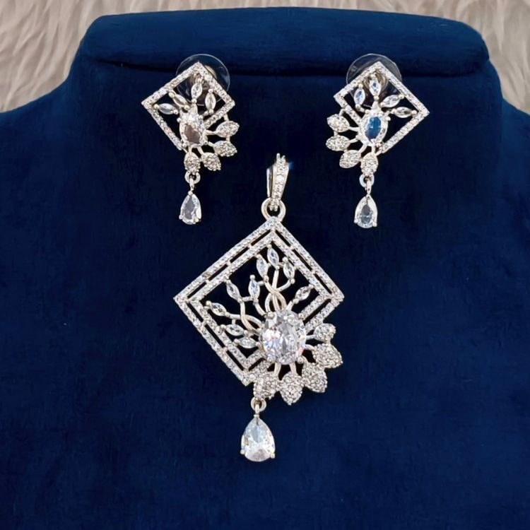 Shine with subtle elegance in this Antique Aqua American Diamond Pendant Set with Matching Earrings. Crafted from premium casting alloy and finished in rhodium plating, this silver-toned set features sparkling aqua crystal stones that add a graceful pop of color. Ideal for festive occasions, bridal events, or daily glam, it’s a must-have for women in Bihar who prefer stylish and sophisticated artificial jewellery with a modern antique touch.