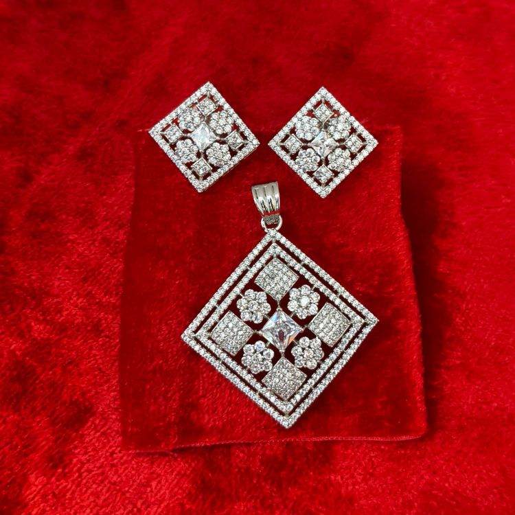 Add a refined sparkle to your collection with this Aqua Crystal Square Luxury American Diamond Pendant Set, complete with matching earrings. Crafted from durable casting alloy and finished in sleek rhodium plating, the silver-tone base highlights the brilliance of aqua crystal stones in a stylish square cut. Ideal for weddings, parties, or festive wear, this pendant set is perfect for women in Bihar who love sophisticated and trendy artificial jewellery.