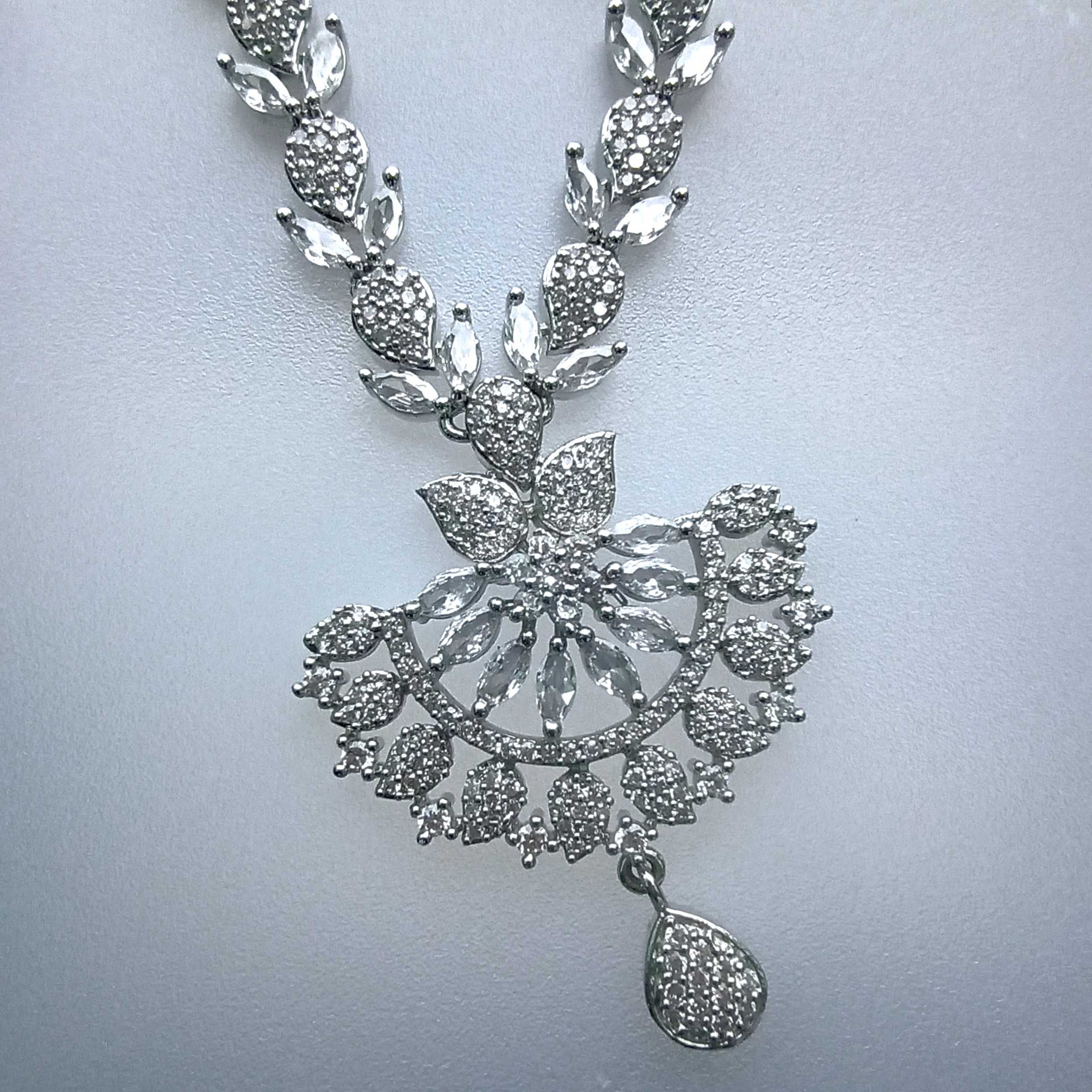 Occasion : Western, Birthday Party, Engagements, Out door CelebrationBase Metal: CopperColor: SilverStone Type: Zirconia Glass StoneType: Pendant and EarringsPlating: Rhodium-PlatedWarranty: Only if Damage product received and You must have Unboxing Video.