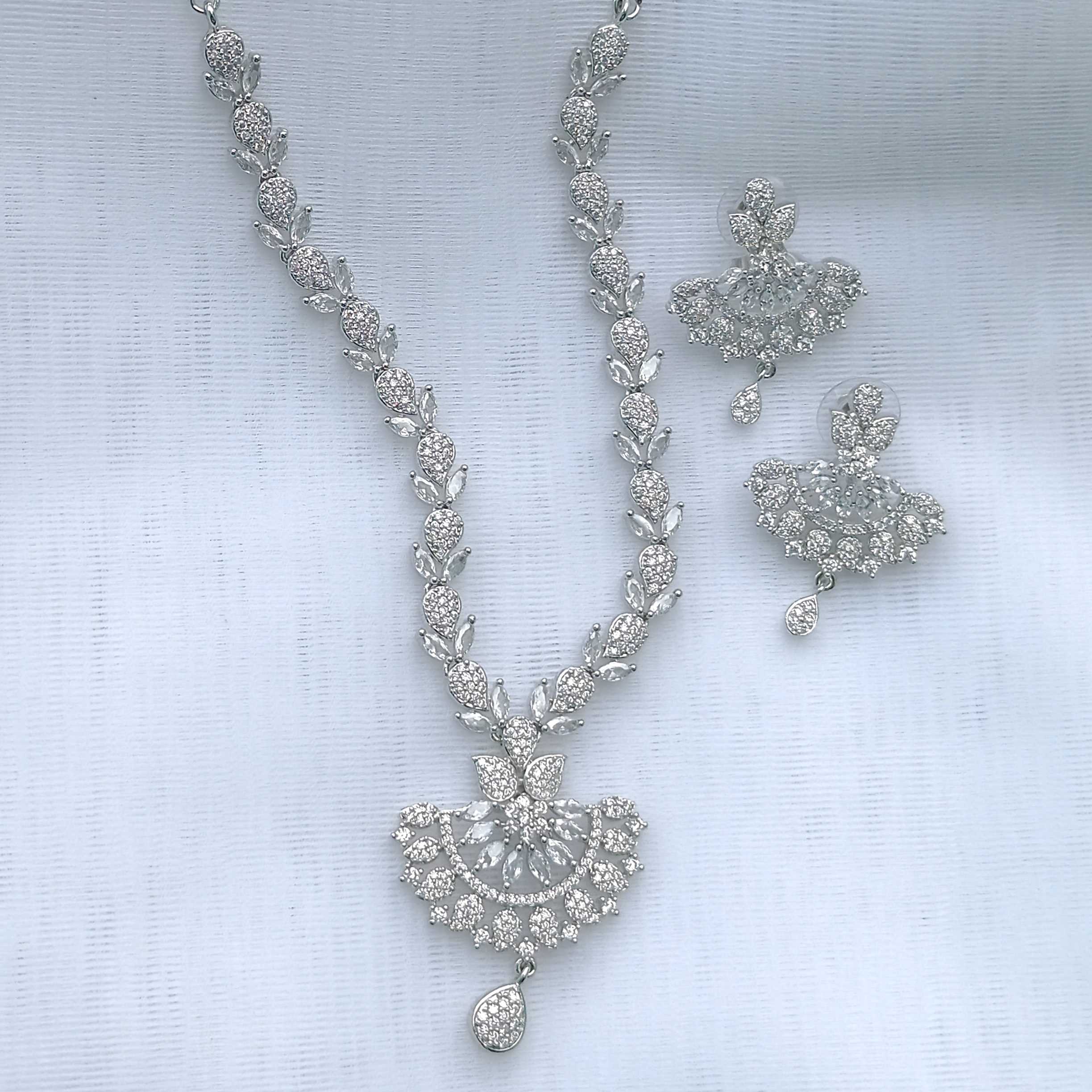 White Blush Micro American Diamond Necklace Set (SG40383)