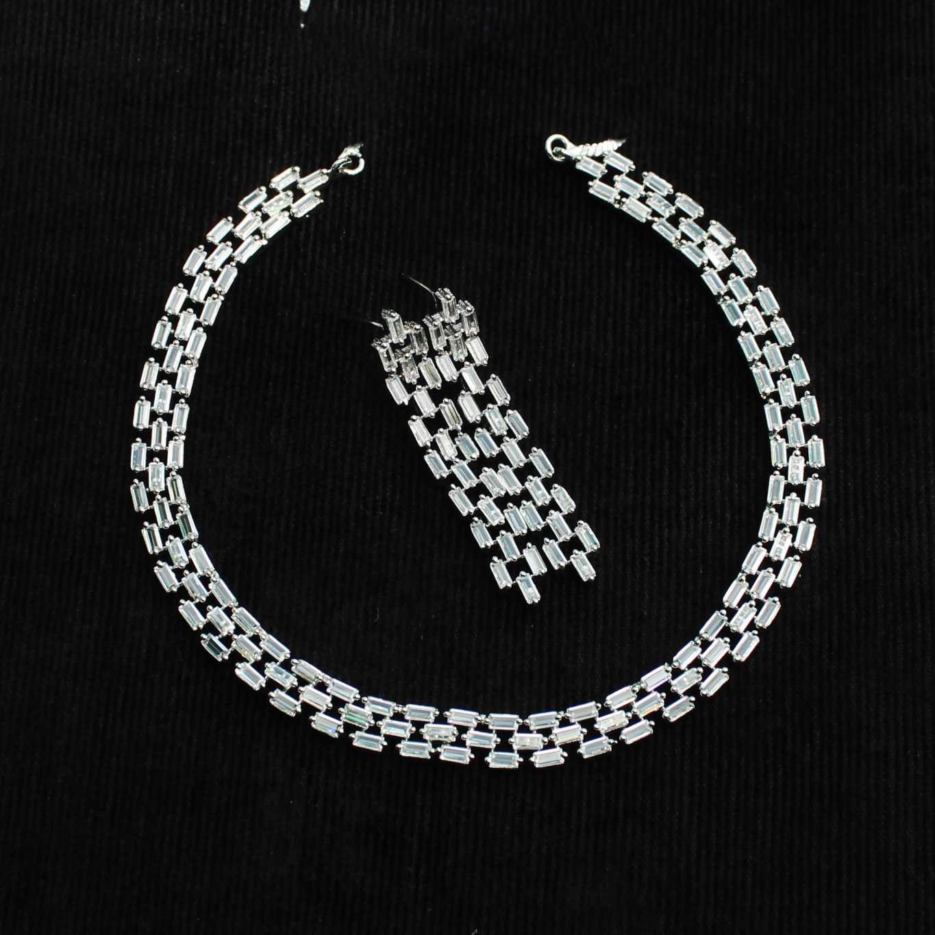 Silver Mesmera American Diamond Necklace Set (SG40476)