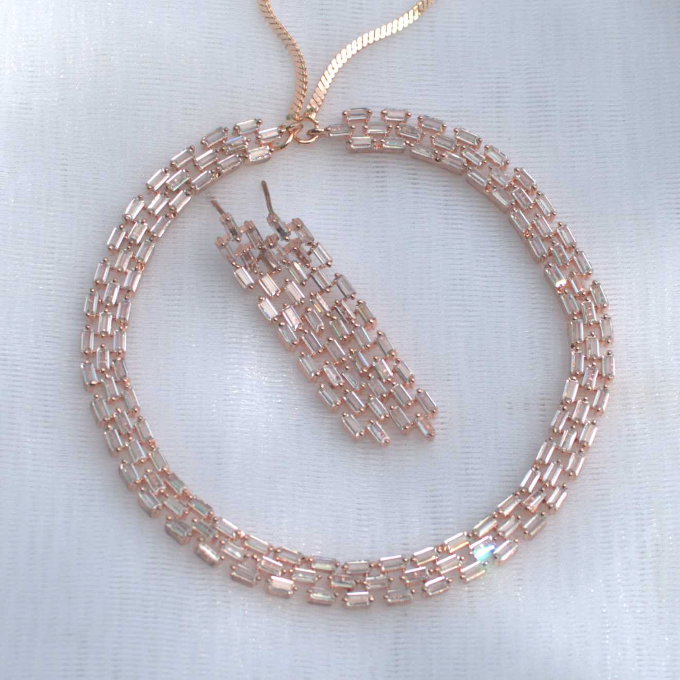 Rose Gold American Diamond Tube Necklace set(SG40392)