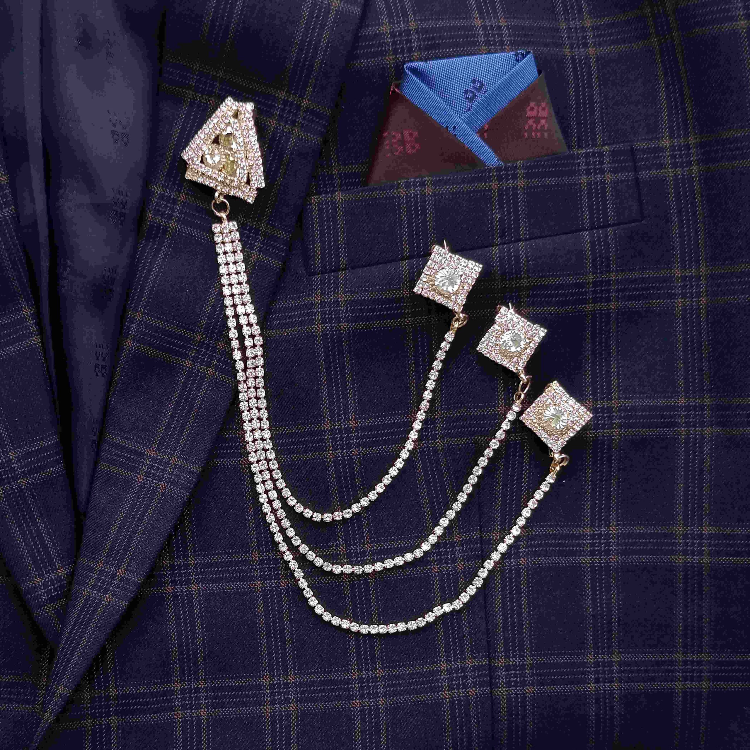- 3 Layered Chain And 1+3 Sherwani and Suit Brooches