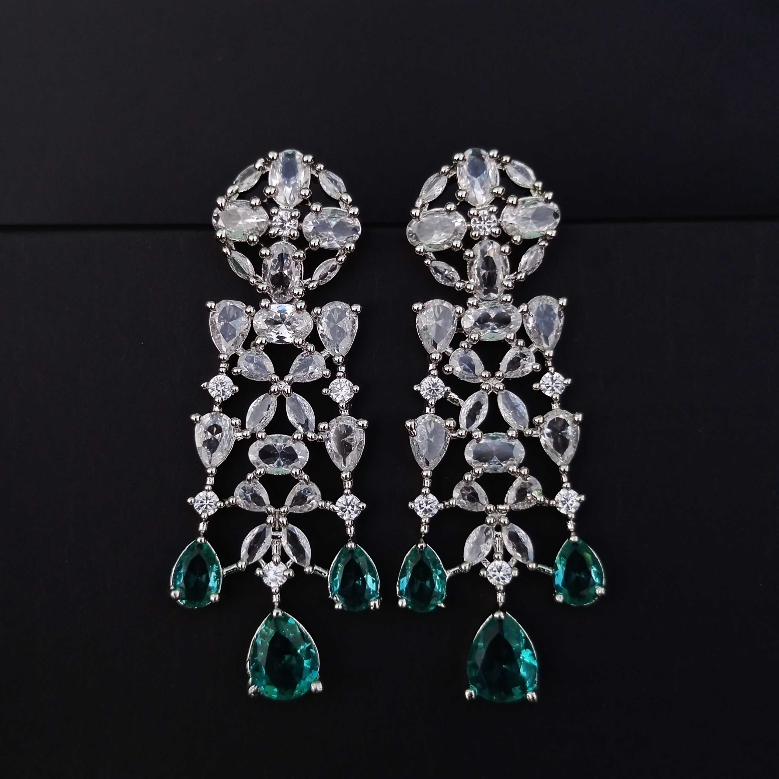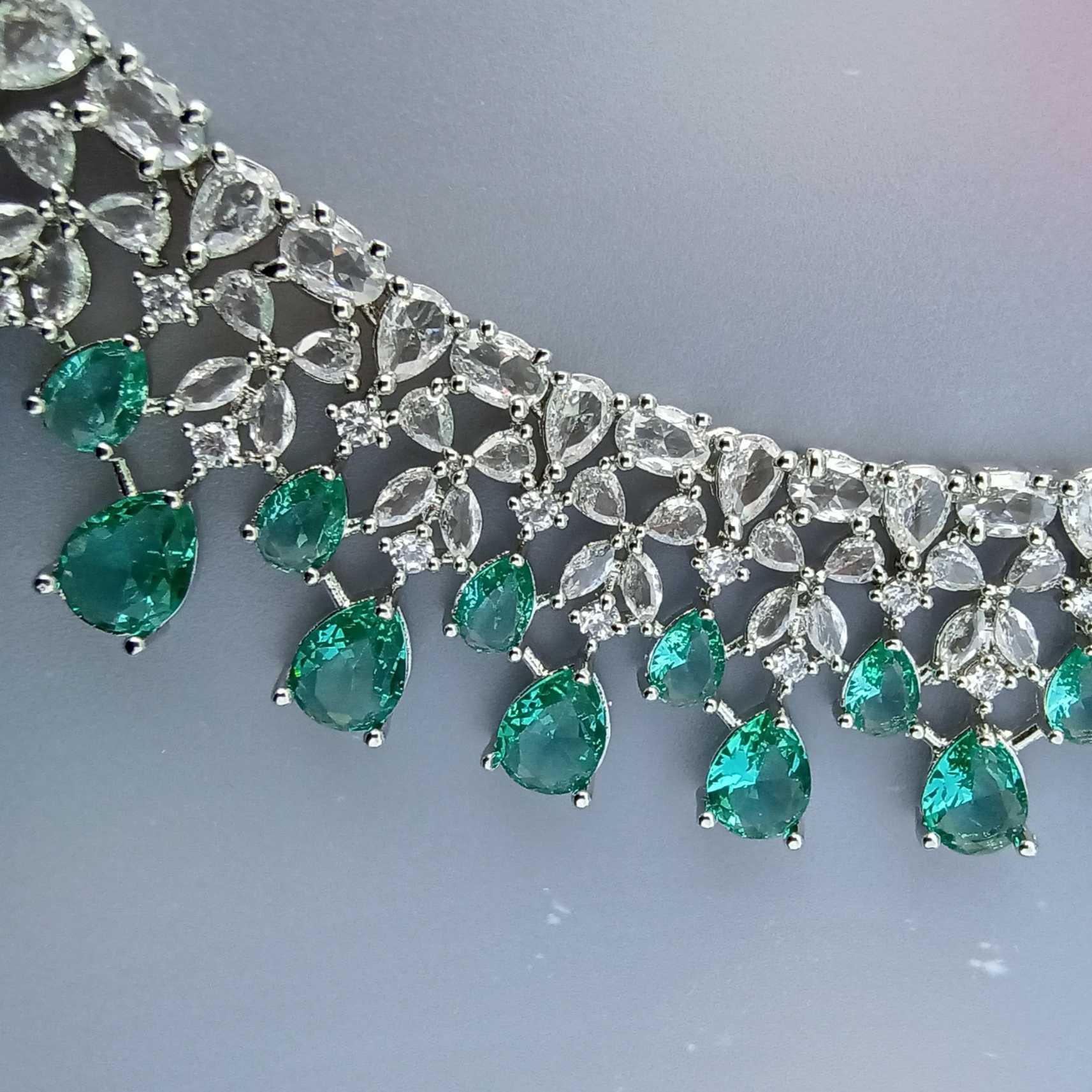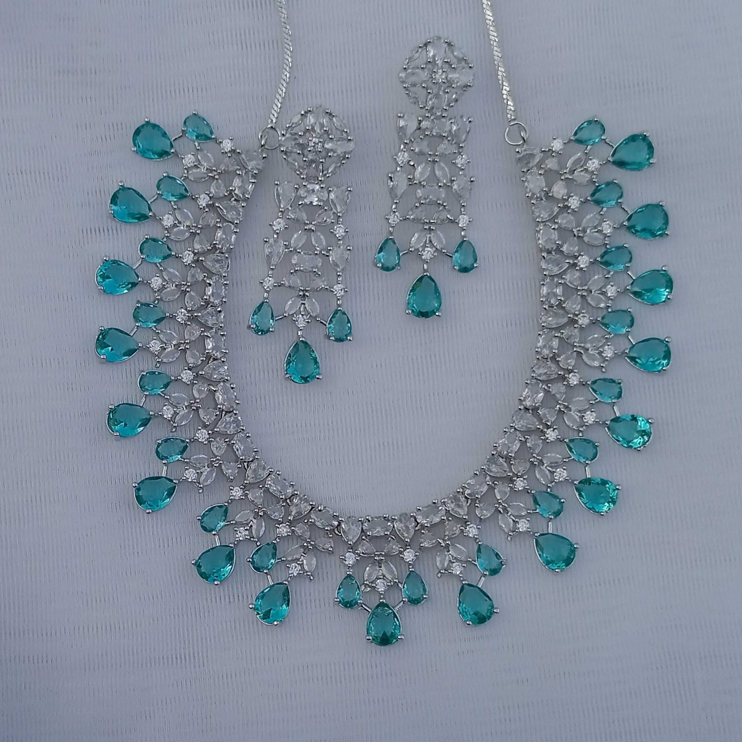 Mint Green Carpet Luxury American Diamond Necklace Set With Matching Earrings(SG40734)