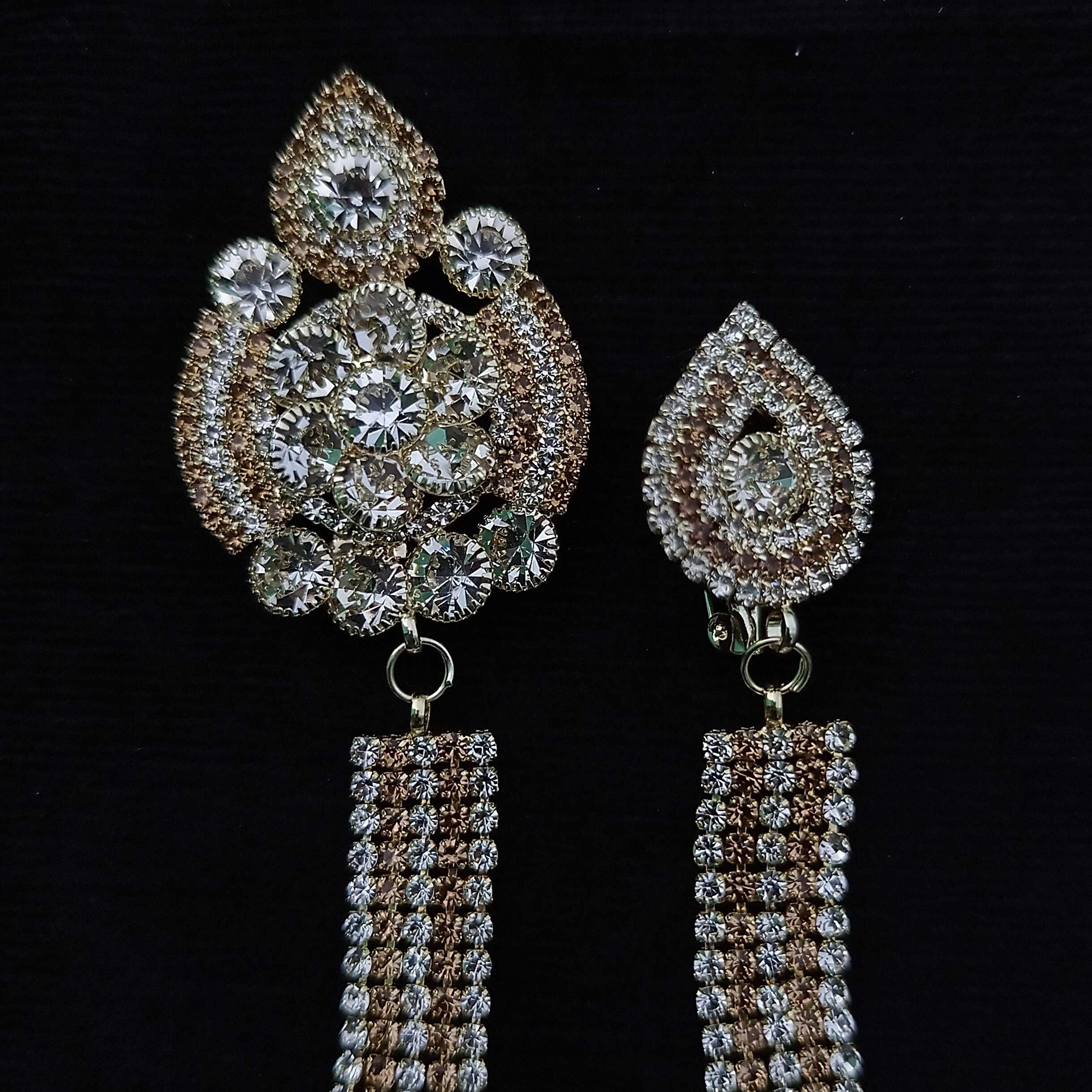 - Stone : Rhinestone ; Stone Color : White ; Size : Brooch : 5cm X 3.5cm ; Chain :26cm