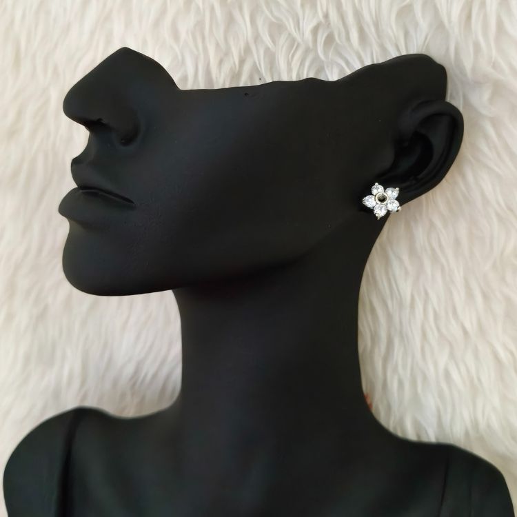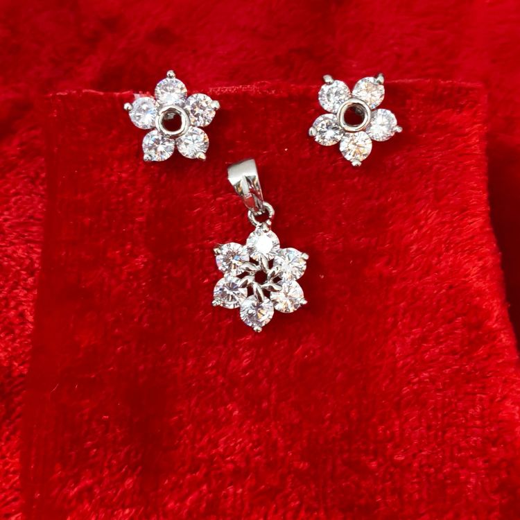Enhance your everyday look with this Crystal Flower Regular American Diamond Pendant Set (SG5055), paired with matching earrings. Crafted from premium casting alloy and finished in rhodium plating, this silver-toned set features a delicate flower design with shimmering crystal stones. Perfect for daily wear, festive occasions, or gifting, it’s an ideal choice for women in Bihar who love timeless and affordable artificial jewellery.