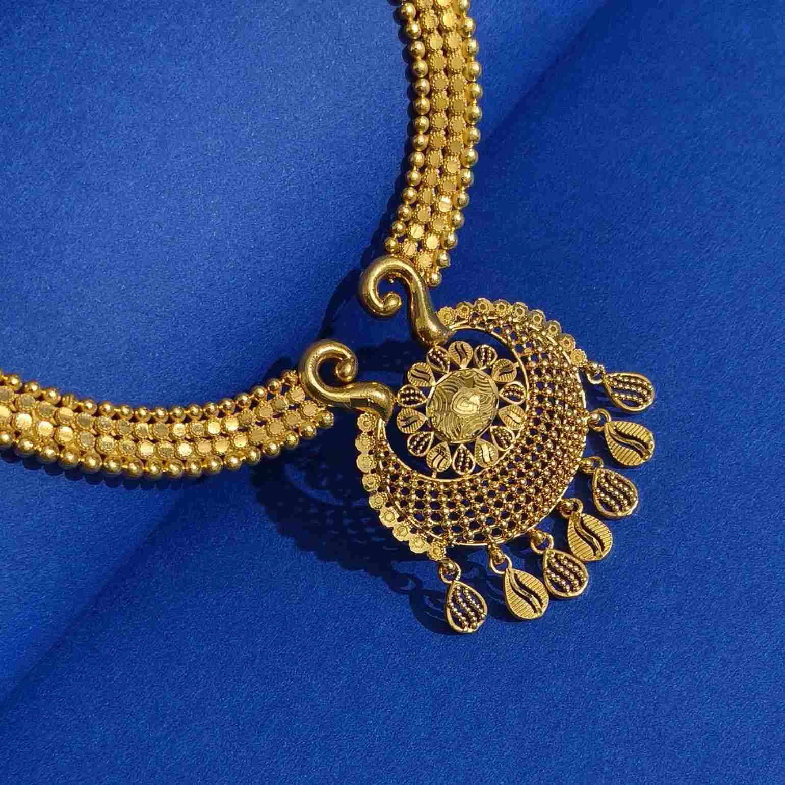 Celebrate tradition with grandeur in this Gold Plated Antique Large Rani Haar Set (SG251750), featuring a striking Rangoli-inspired pendant and matching earrings. Made from high-quality copper with a rich gold antique finish, this necklace set is a regal choice for weddings, bridal wear, and festive events. A perfect fit for women in Bihar who admire bold, cultural, and timeless artificial jewellery that leaves a lasting impression.