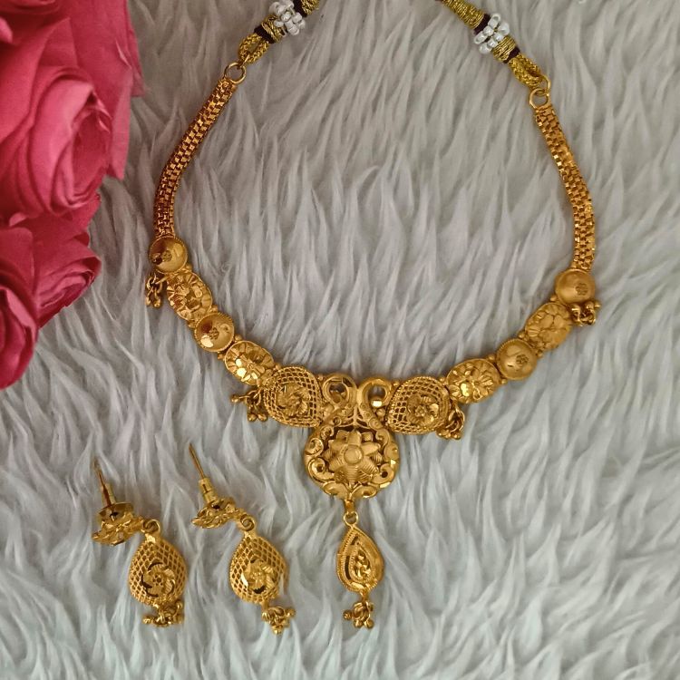 Grace your ethnic attire with this elegant Gold Plated Necklace With Matt Polish, designed from durable copper base metal and finished in classic matt gold tone. Perfect for weddings, festivals, and special occasions, this necklace offers a subtle royal charm. A stylish pick for women in Bihar who appreciate traditional artificial jewellery, costume accessories, and timeless bridal necklace sets with an antique look.