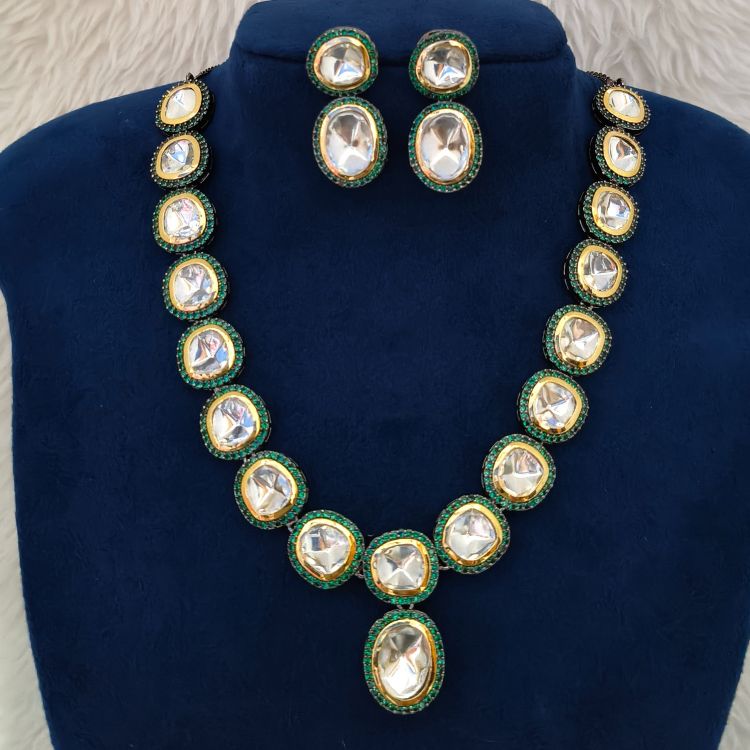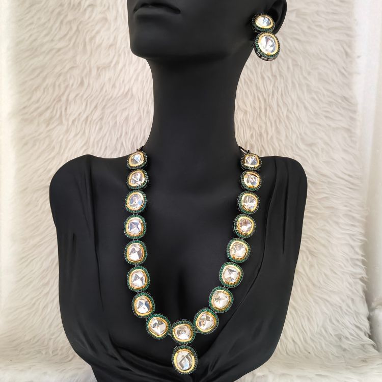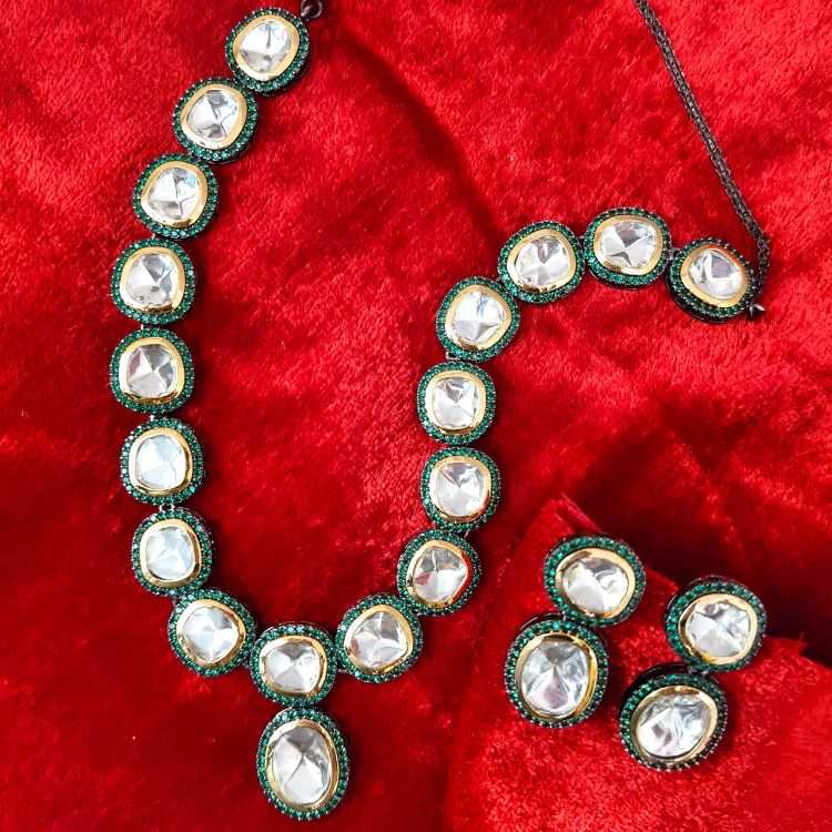Green Victorian Kundan Polki Necklace With Matching Earrings (SG351460)