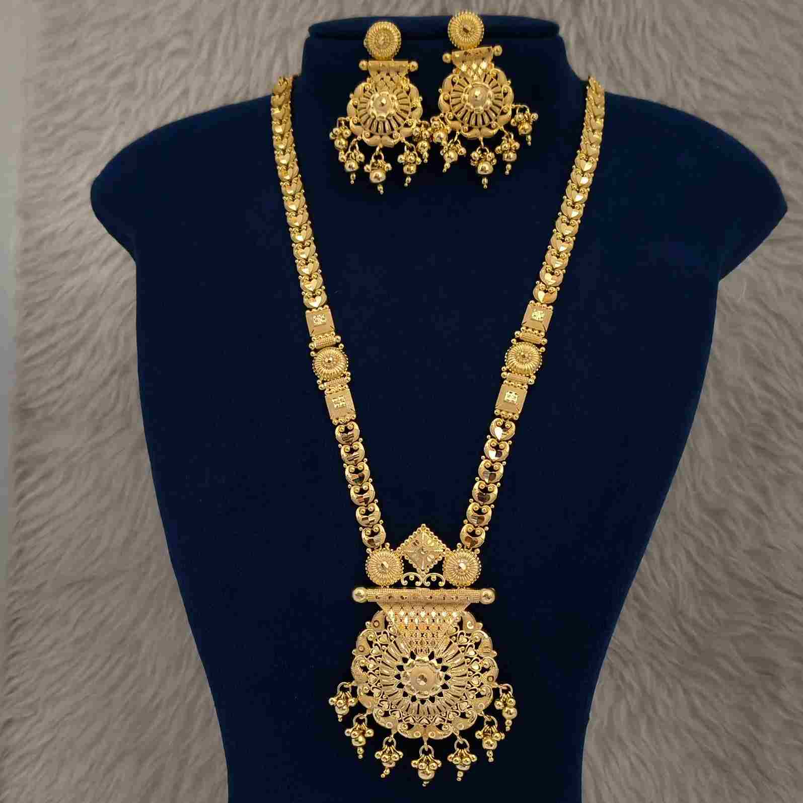Make a graceful statement with this Matt Gold Plated Antique Flower Cut Long Fancy Rani Haar Set . Designed with a detailed floral cut pendant and matching earrings, this copper-based set features a rich matte gold antique finish that enhances its royal appeal. Perfect for weddings, festivals, and traditional occasions, it’s an ideal choice for women in Bihar who seek sophisticated and long-lasting artificial jewellery for bridal and ethnic wear.