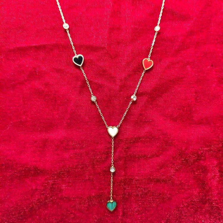 Multi Color Heart Gold Plated Stainless Steel Luxury Anti Tarnish Round Chain For Girls (SG20140)
