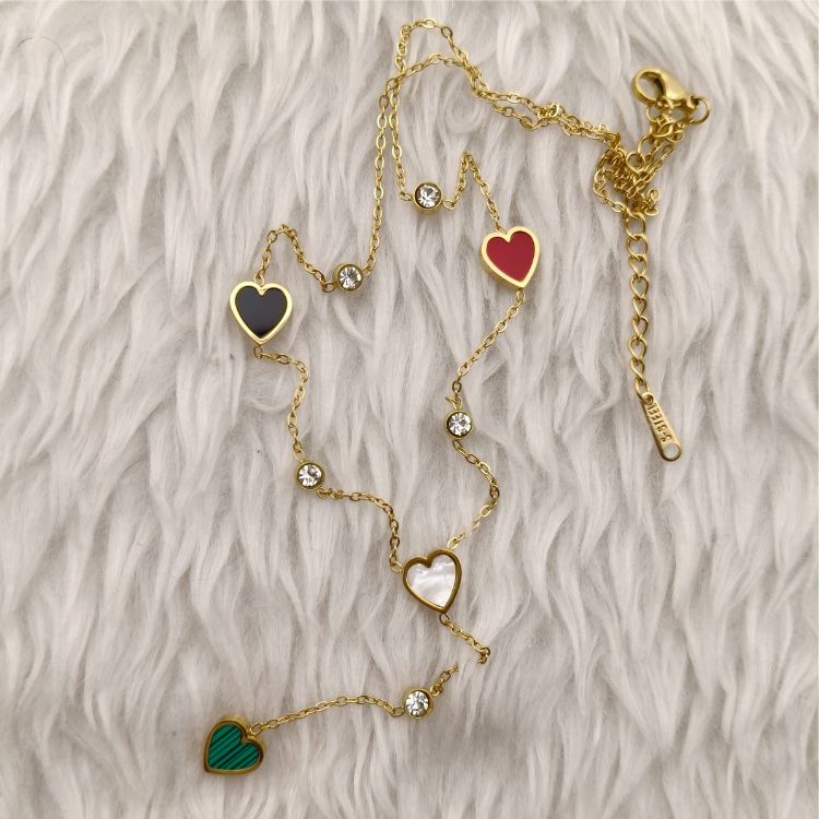 This playful and elegant chain features charming multi-color heart accents on a gold-plated stainless steel base, offering both luxury and durability. Its anti-tarnish finish makes it perfect for everyday wear. Style it solo for a cute pop of color or layer it with minimalist chains for a trendy, youthful look.