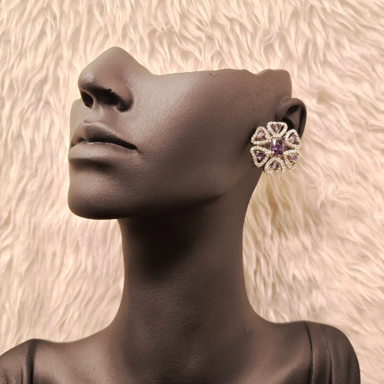 Turn heads with this Purple Round Luxury American Diamond Pendant Set, a stunning fusion of royal purple hues and sparkling brilliance—beautifully paired with matching earrings for an effortlessly elegant look.