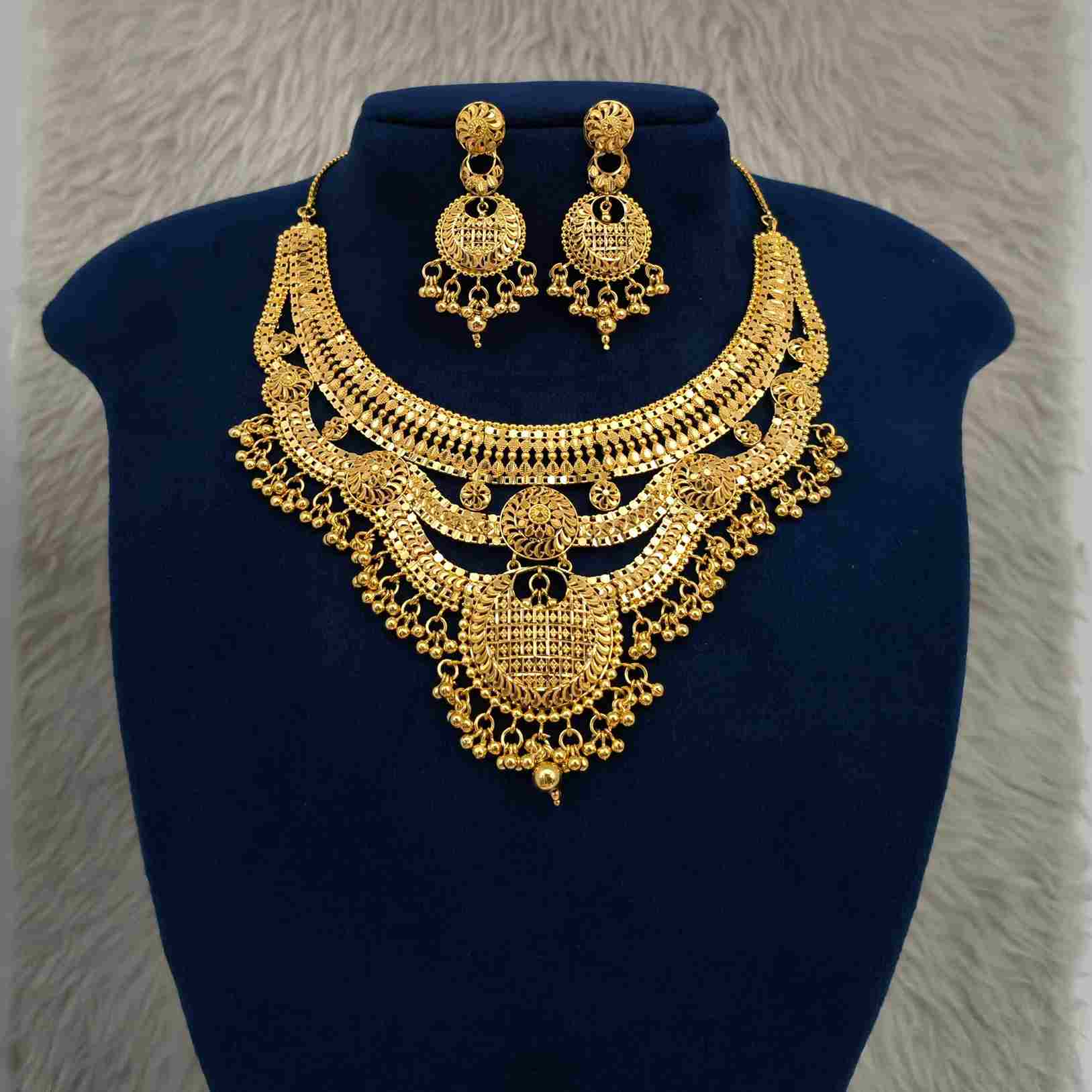 Real Gold Plated 3-Layer Necklace Set With Matching Earrings – Chatai Design(SG251645)
