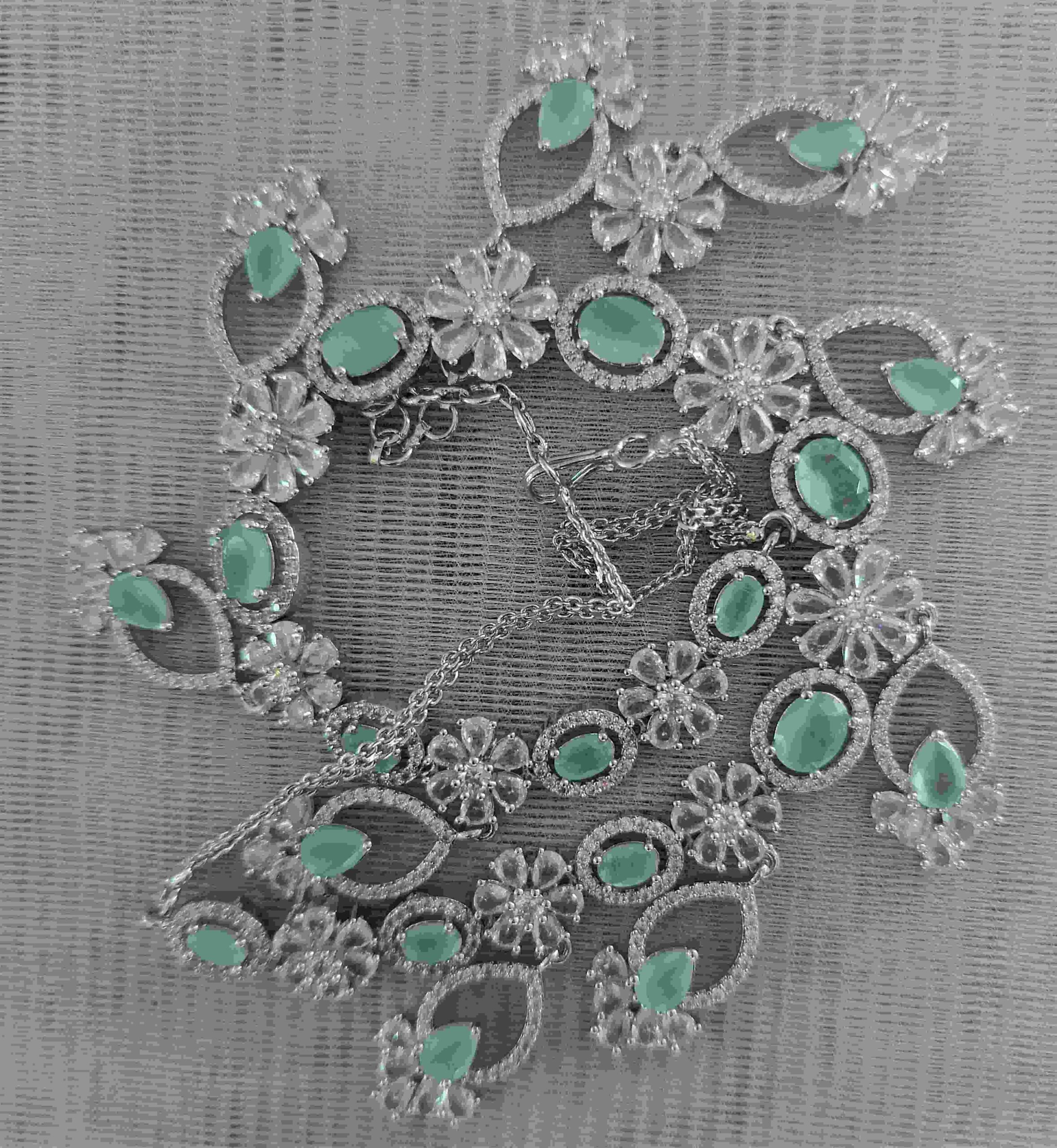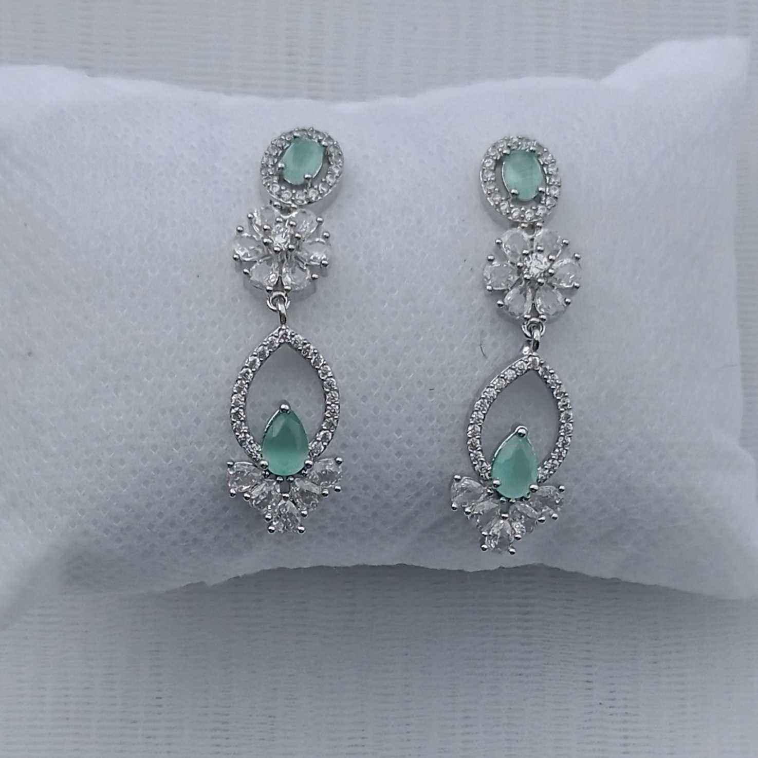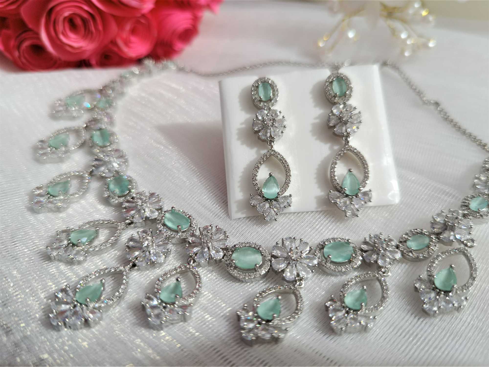 Mint Colour Flower American Diamond Necklace set With Matching Earrings(SG40478)