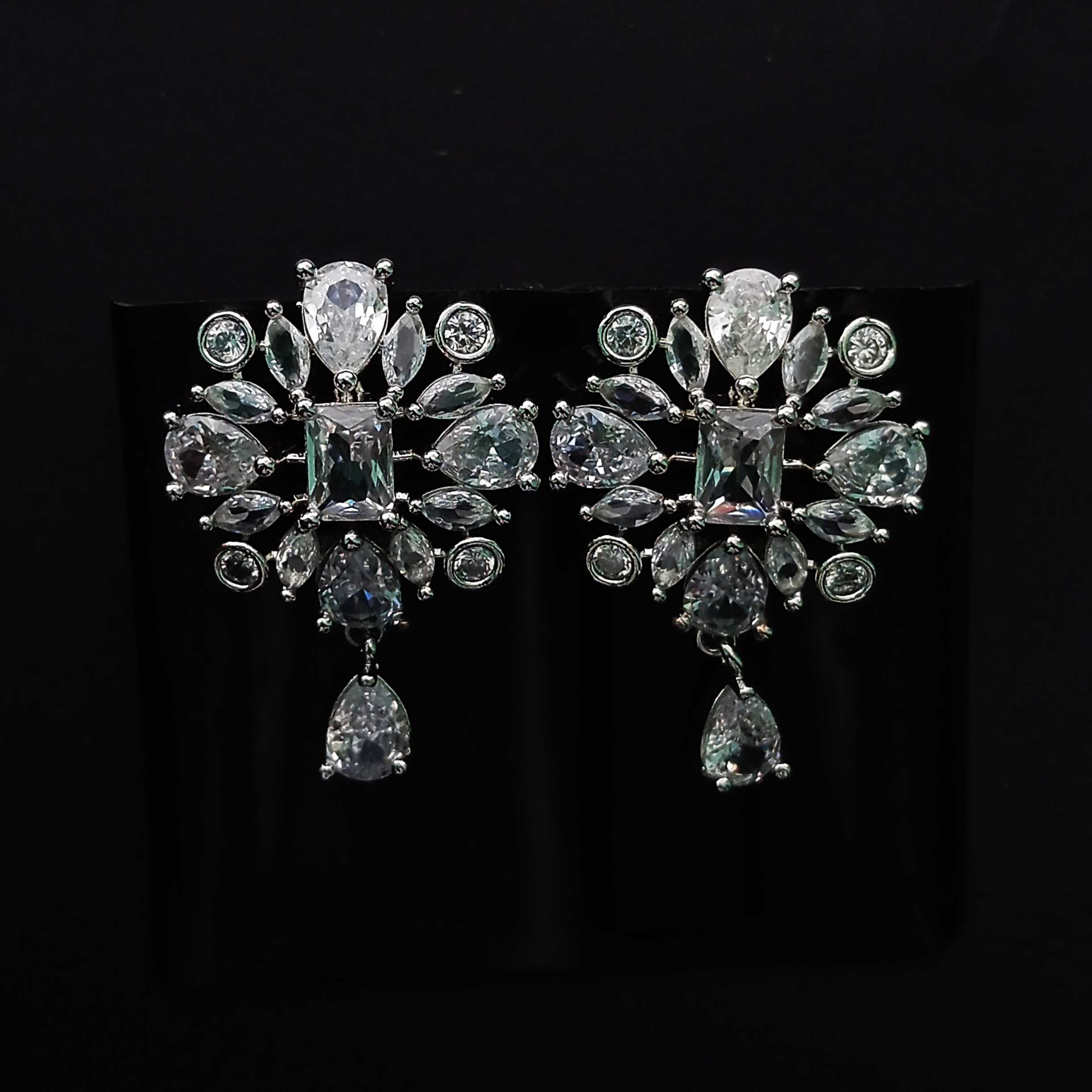 Occasion : Western, Birthday Party, Engagements, Out door CelebrationBase Metal: CopperColor: SilverStone Type: Cubic Zirconia Glass StoneType: Pendant and EarringsPlating: Rhodium-PlatedWarranty: Only if Damage product received and You must have Unboxing Video.
