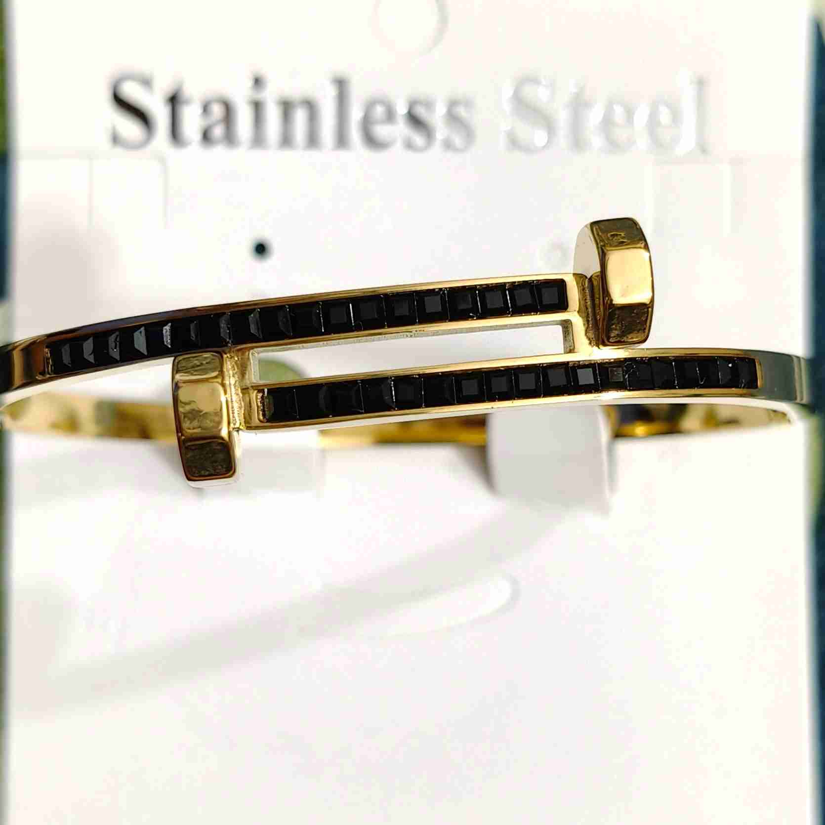 Crafted with a unique black gold-plated finish and accented with sparkling American Diamonds, this bangle-style bracelet (SG20159) combines bold elegance with modern design. Made from stainless steel and treated with an anti-tarnish coating, it’s perfect for adding a luxe edge to both ethnic and western outfits.