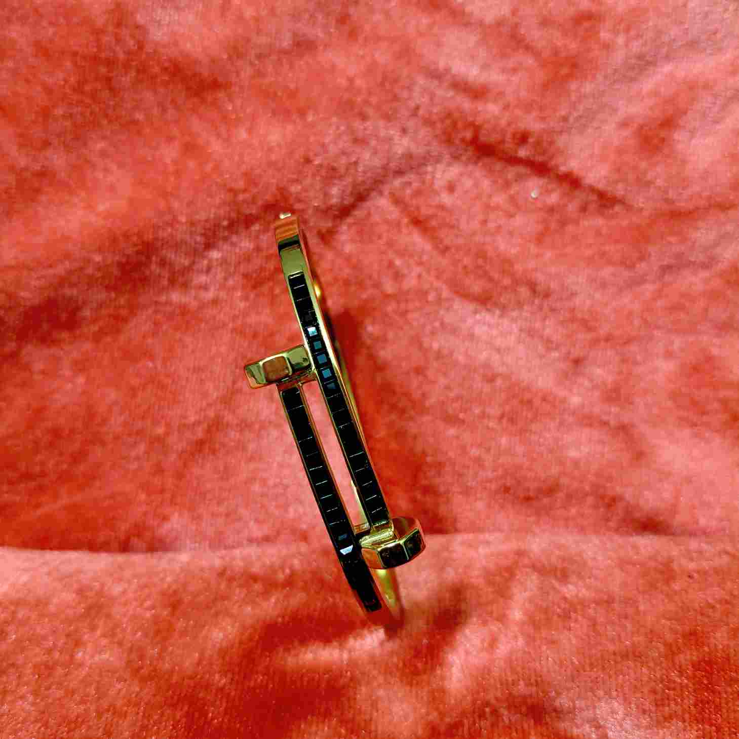 Bold. Elegant. Unforgettable — this black gold-plated AD bracelet makes a striking statement with timeless sophistication.