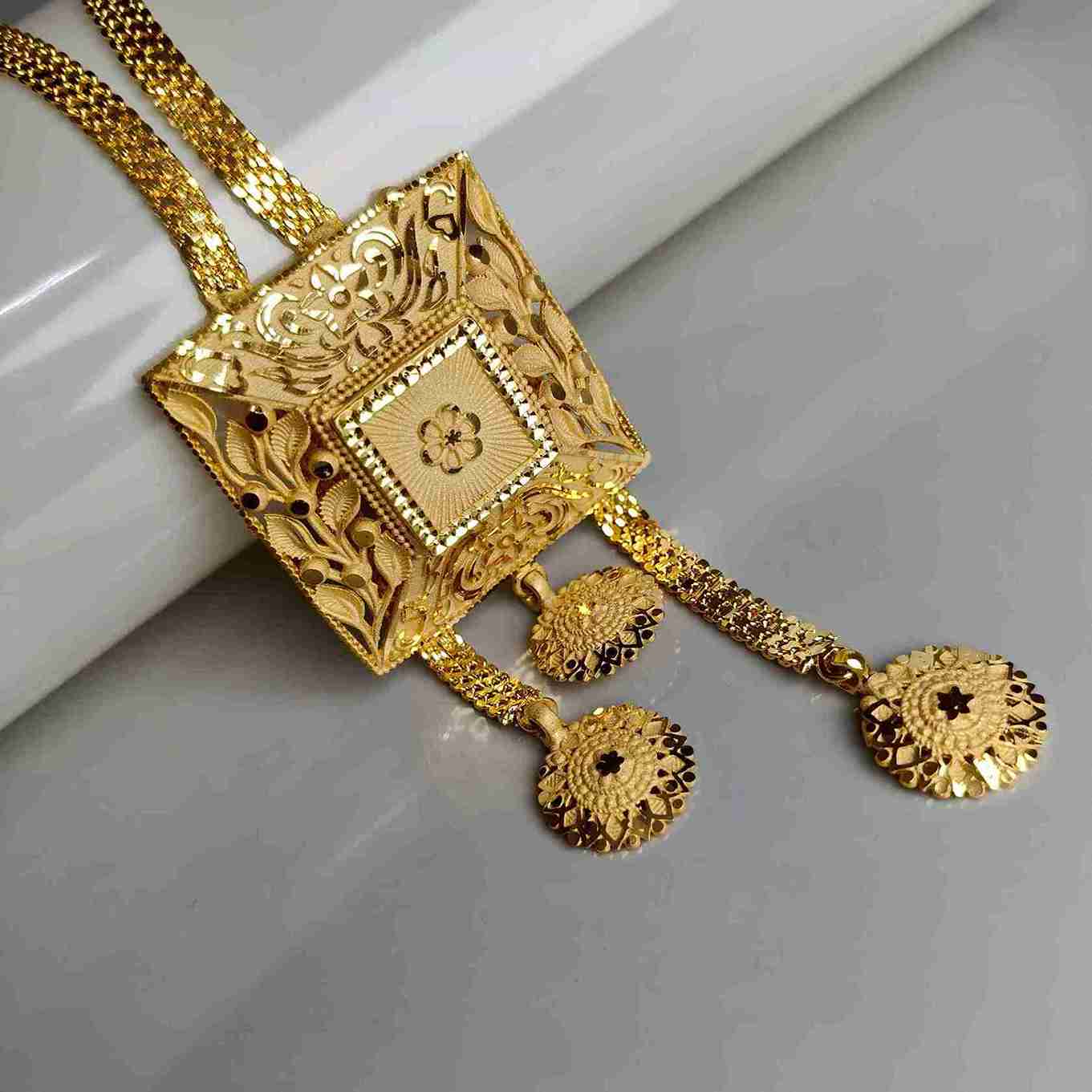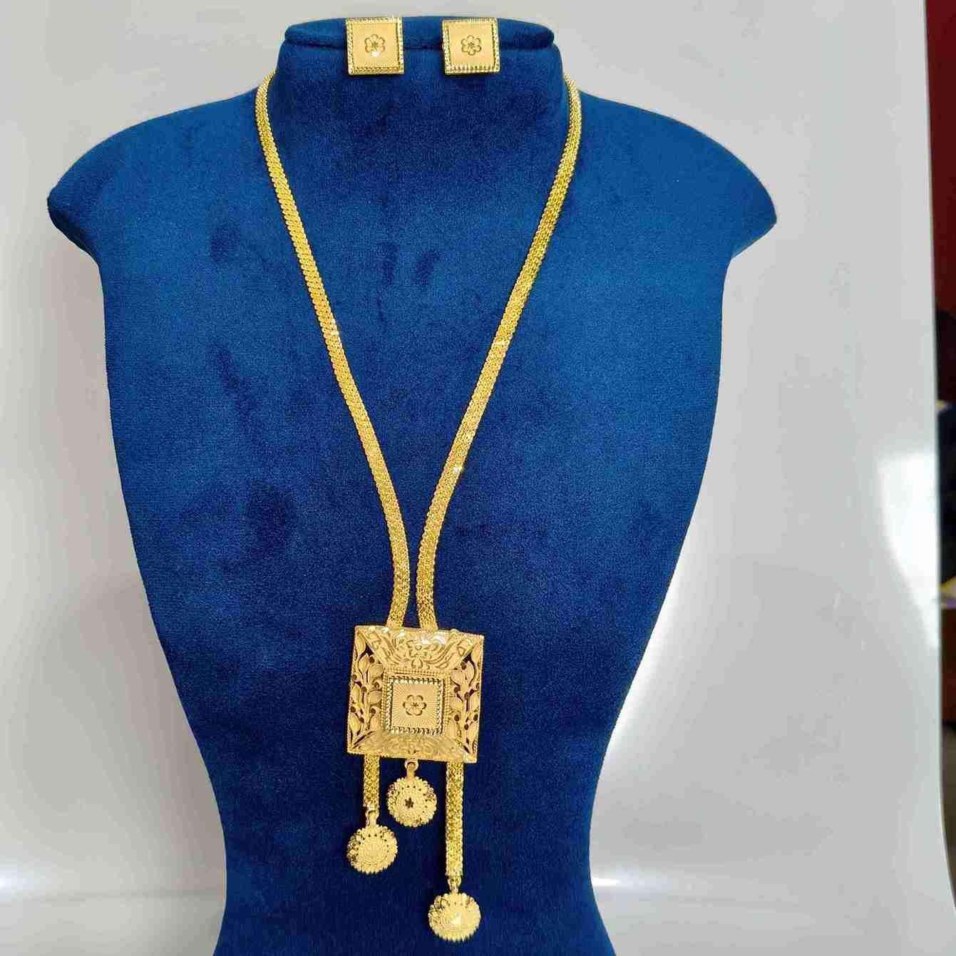 Enhance your ethnic elegance with this Forming Gold Long Chain Necklace Set with Matching Earrings, featuring a timeless square design. Expertly crafted from durable copper metal and finished with a radiant gold polish, this piece captures the beauty of traditional Indian craftsmanship. Perfect for women in Bihar who love artificial gold jewellery, this lightweight set pairs beautifully with both sarees and festive outfits — ideal for weddings, celebrations, and special occasions.