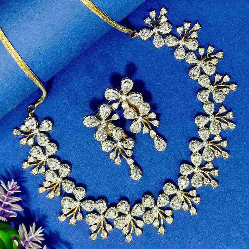 White Blush Micro American Diamond Necklace Set (SG40383)