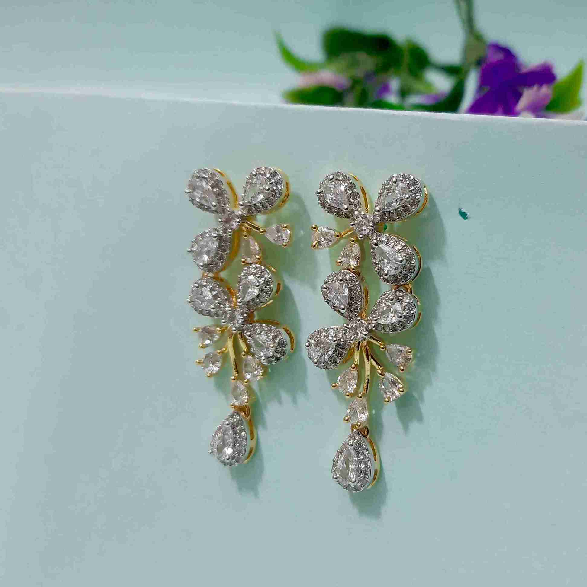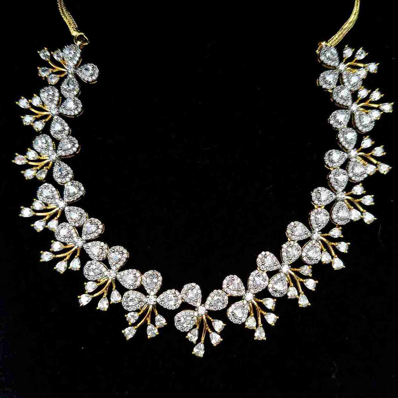Golden Crystal Cascade American Diamond Necklace Set (SG1115)