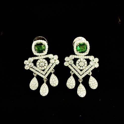 Green AAA Star Cut American Diamond Necklace Set With Matching Earrings (SG3014)