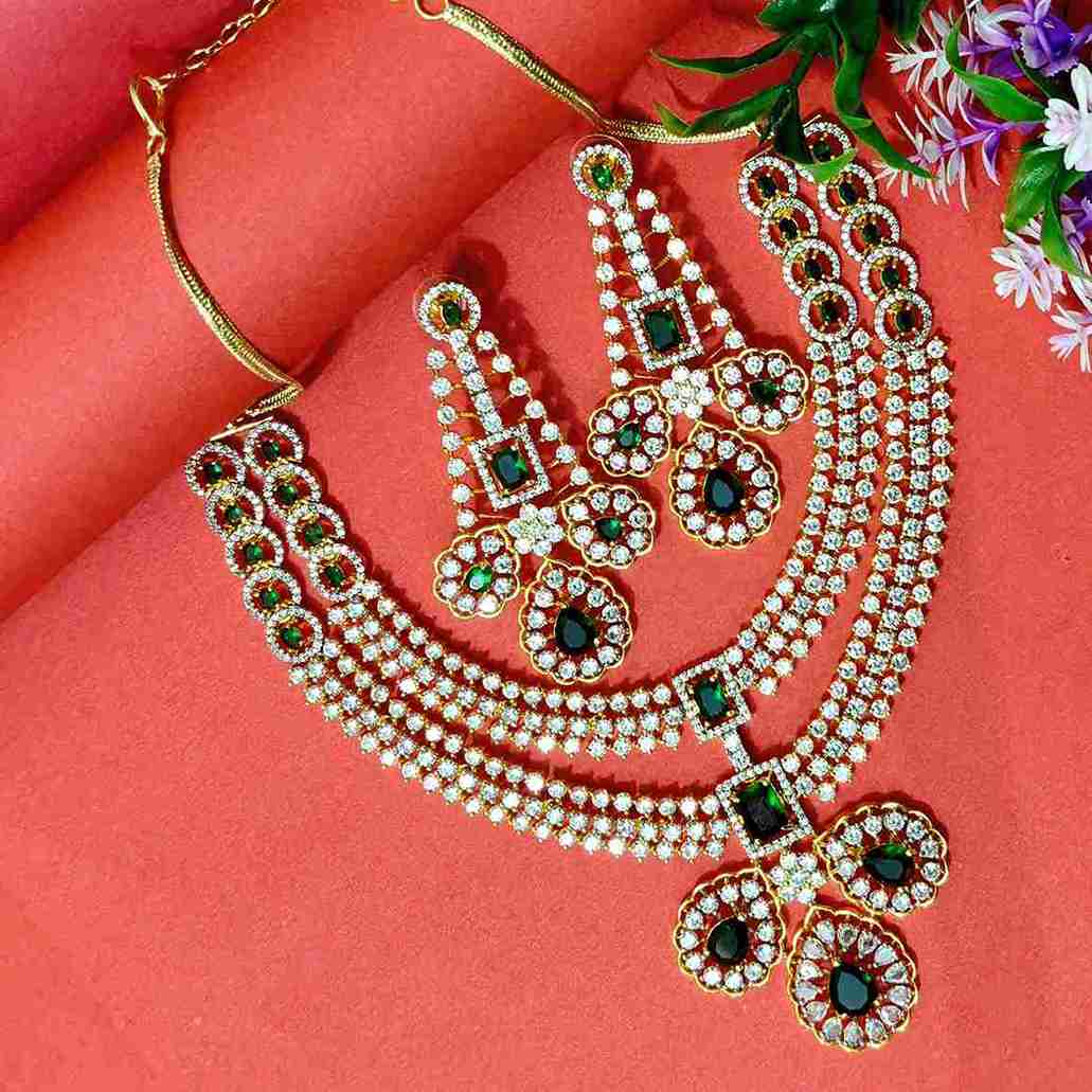 Green Double Layer American Diamond With Pendent Necklace Set (SG6002)