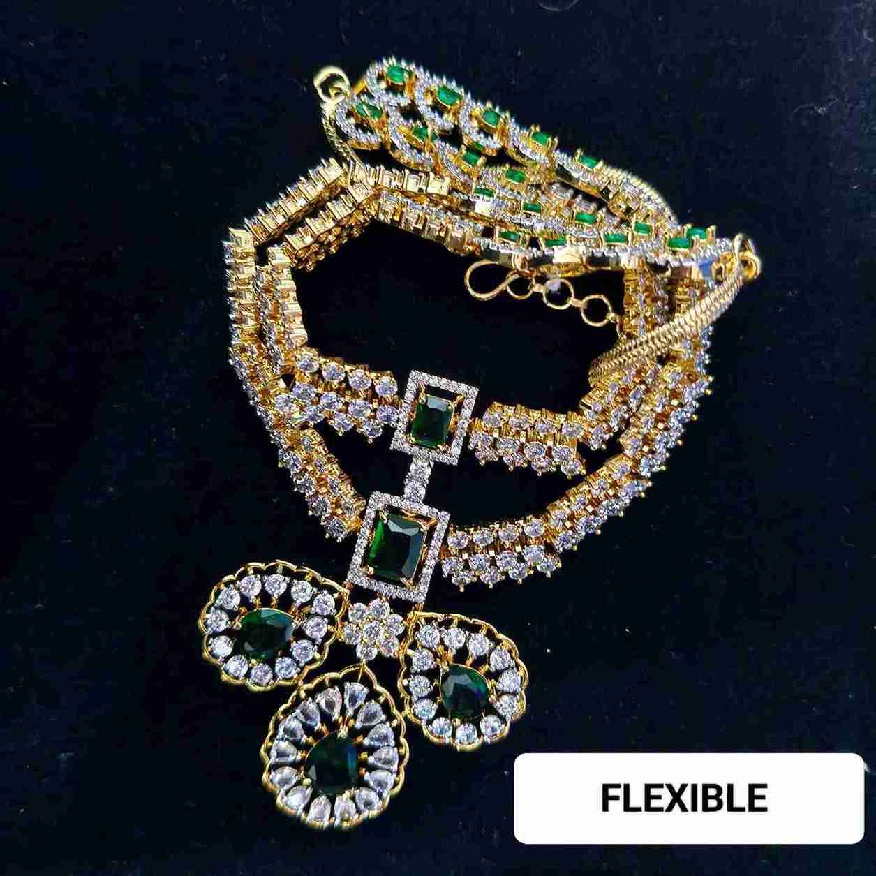 Make a graceful statement with this Green Double Layer American Diamond Necklace Set – where elegance meets refined sparkle.