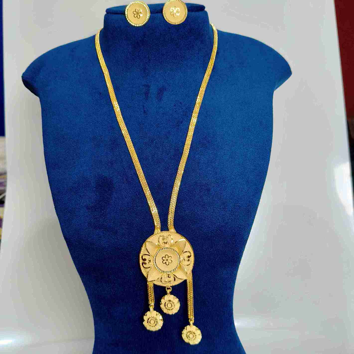 Embrace grace and grandeur with this Round Forming Gold Long Chain Necklace Set — a perfect blend of tradition, elegance, and timeless beauty.”