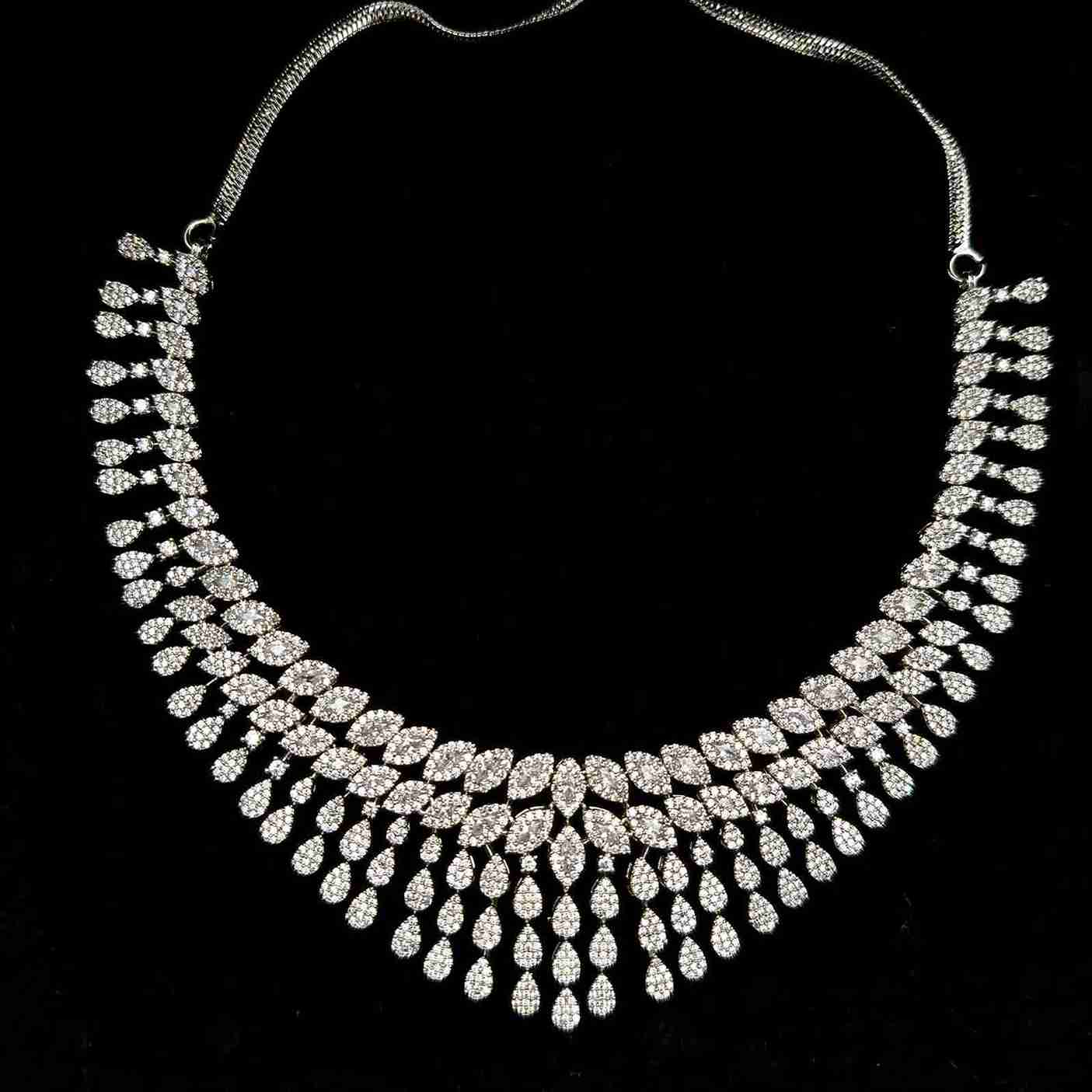 Silver LuxDrop Designer American Diamond Necklace Set (SG2005)