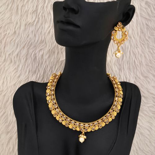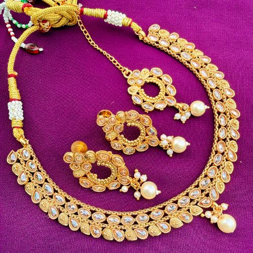 White Pearl Reverse Ad Necklace Set With Matching Tika (SG40440)