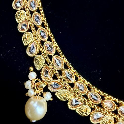 Golden Crystal Cascade American Diamond Necklace Set (SG1115)