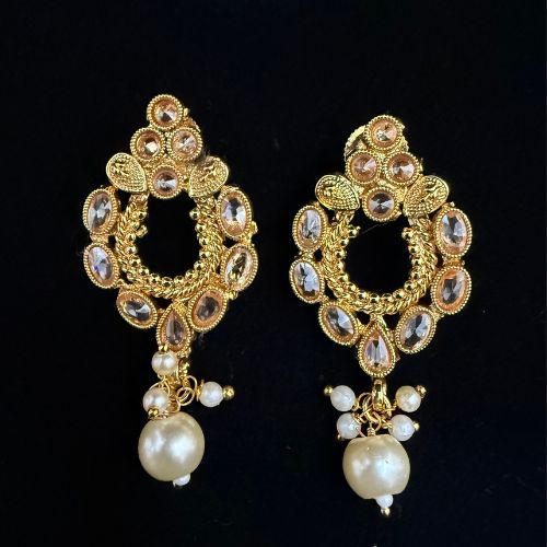 Designed for women who adore refined glamour, the Golden Crystal Cascade American Diamond Necklace Set adds a radiant touch to festive and formal ensembles. With cascading crystal accents set in gold tones, it exudes a regal charm that pairs beautifully with sarees, lehengas, or even elegant gowns. Ideal for weddings, receptions, or special evenings, this set transforms your look with effortless sophistication.