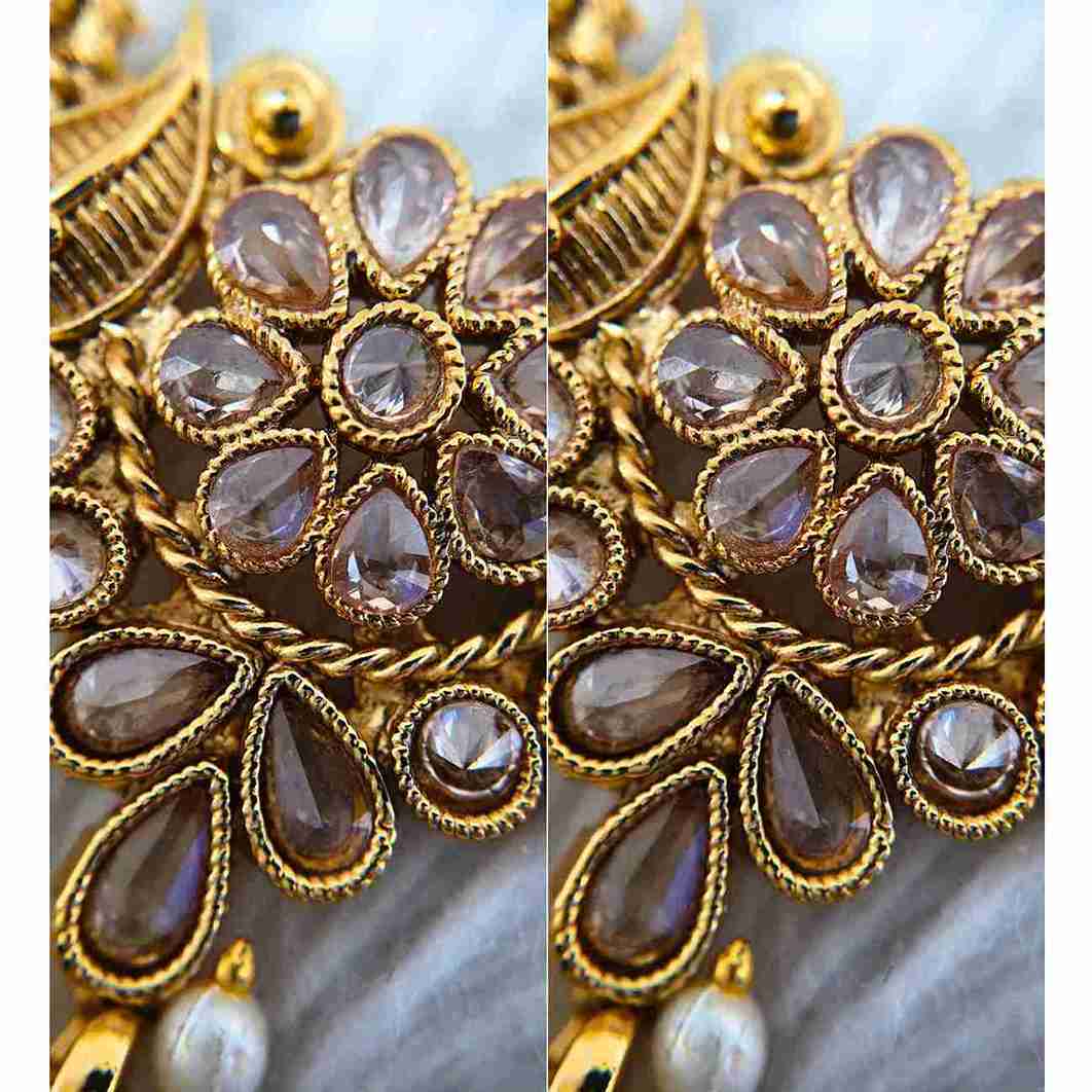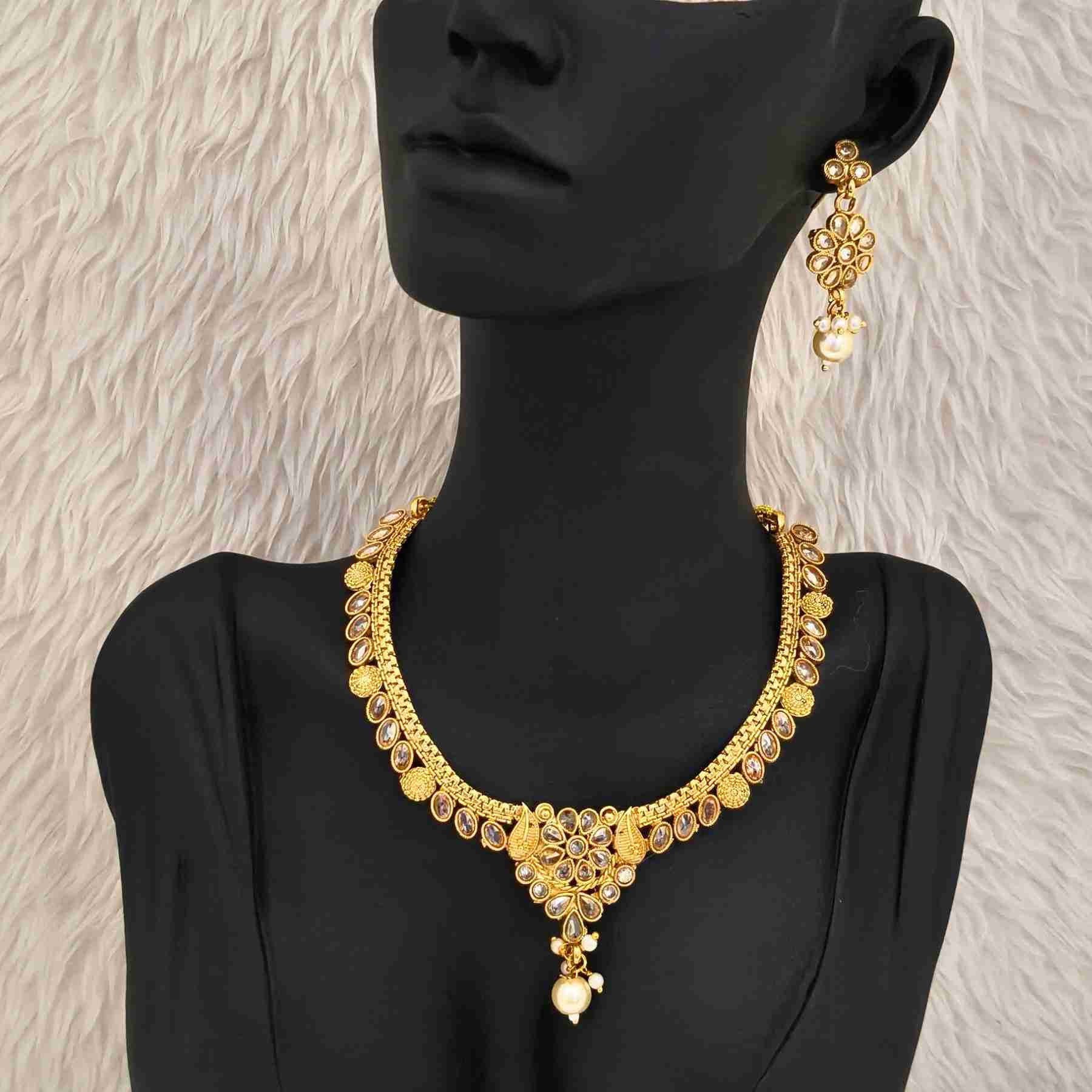 An exquisite harmony of Monalisa Stones and shimmering Reverse American Diamonds — this replica necklace set with matching earrings captures timeless elegance with a modern twist.